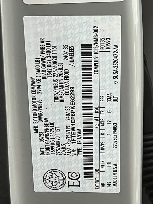 - 2.7L V6 Ecoboost Payload Package $750.00